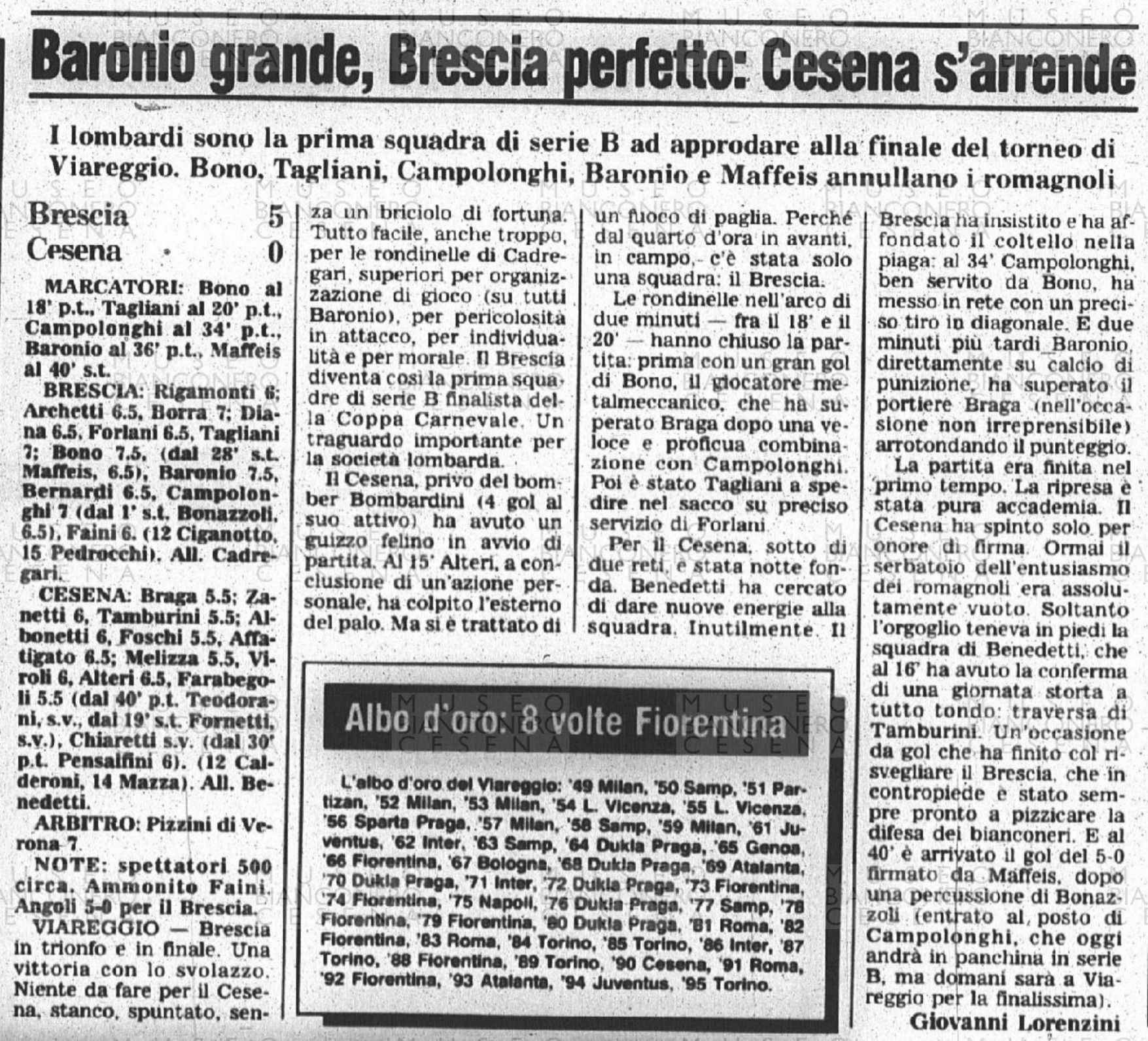 La Gazzetta dello Sport BARI-CESENA 1995-96 (Primavera Torneo di Viareggio) LAZIO-CESENA 1995-96 (Primavera Torneo di Viareggio)