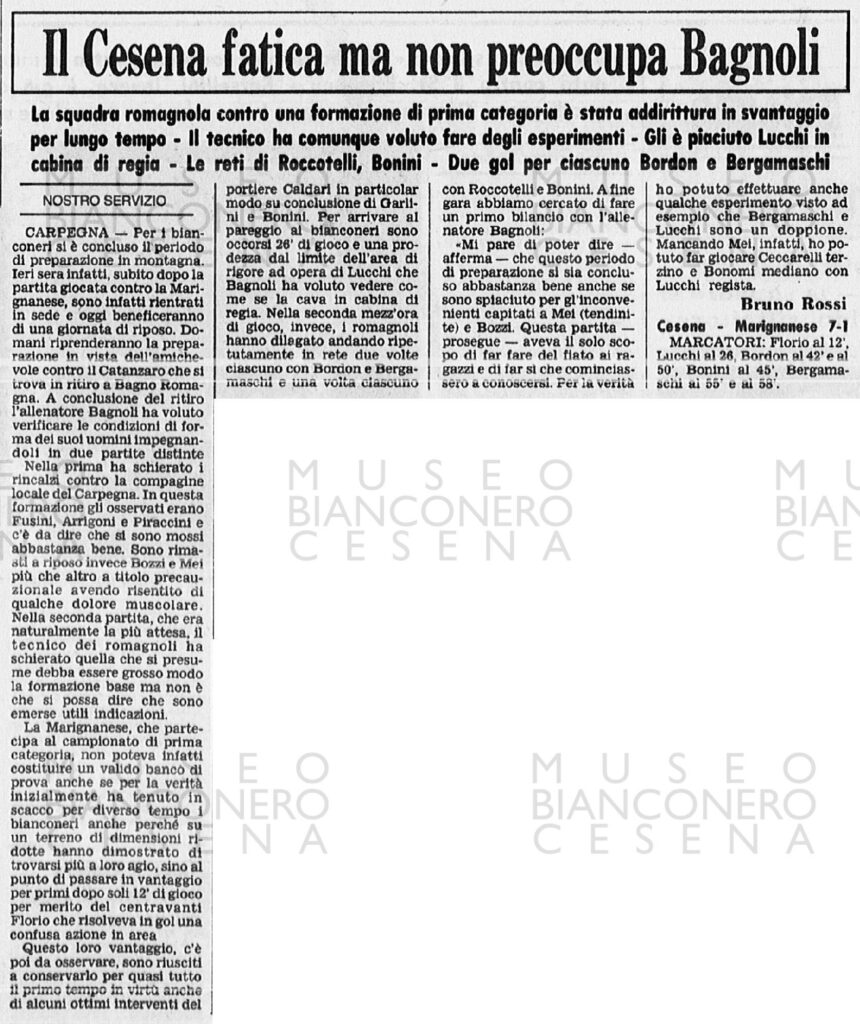 La Gazzetta dello Sport Le copertine dell’Intrepido nei suoi vent’anni col Cesena CESENA-CATANZARO 1980-81 (amichevole)