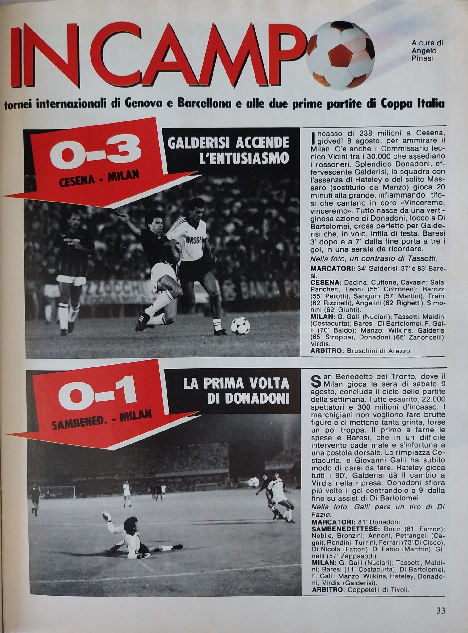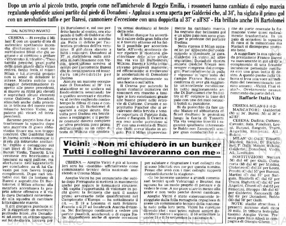 La Gazzetta dello Sport La Gazzetta dello Sport La Stampa da "Forza Milan", nr.9, settembre 1986 I programmi delle trasferte del Cavalluccio: Perugia-Cesena 1972-73 CESENA-ROMA 1986-87 (amichevole)