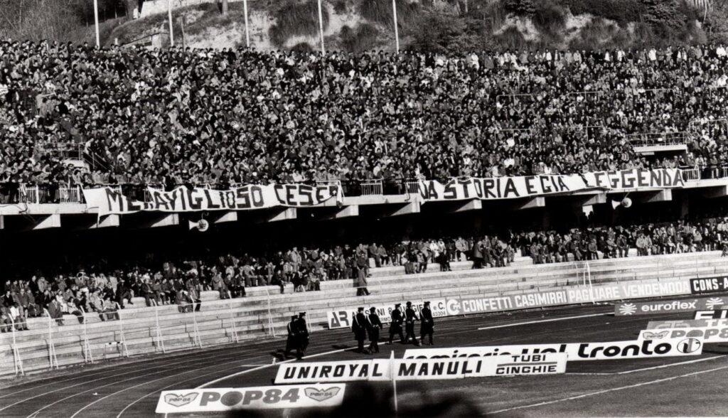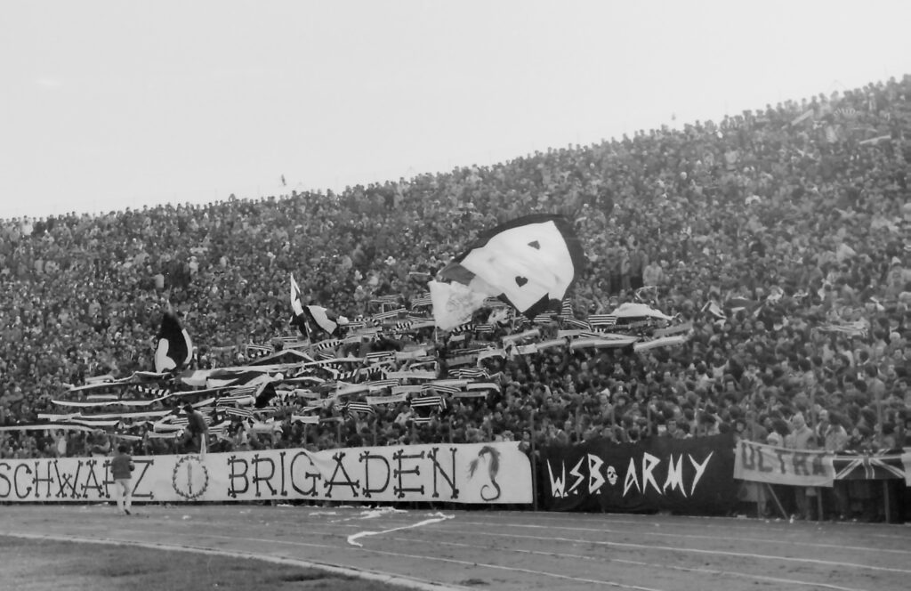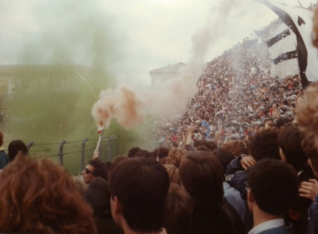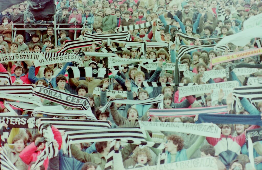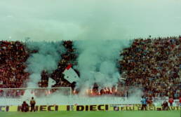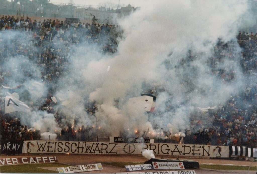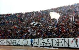 "Quando saremo nella Curva Sud come una bomba il tifo esploderà", si cantava a quei tempi (la foto si riferisce probabilmente a Cesena-Fiorentina) Sciarpe di vario tipo in Cesena-Cagliari Sciarpata in Cesena-Cagliari Fumogeni e torce contro il Cagliari La Curva Sud in Cesena-Cagliari Lo striscione di 42 metri "Meraviglioso Cesena la tua storia è già leggenda" strappato ad Ascoli che poi sarà ricucito Weisschwarz Brigaden (Cesena-Inter) Suggestiva immagine del Curvone e della gradinata contro l'Inter W.S.B. Arrmy in Cesena-Juventus Il Curvone coperto dai fumogeni contro la Juventus La Curva Sud vista dalla Curva Ferrovia (Cesena-Juventus) Cesena-Juventus I draghi sputa fuoco hanno sostituito i teschi con l'elmetto nello strsicione delle Weisschwarz Brigaden (Cesena-Juventus) La Fiorita imbiancata e colorata dai fumogeni in Cesena-Roma Cesena-Roma Weisschwarz Brigaden (Cesena-Torino) Jumbo e dietro il Curvone contro il Torino Cesena-Udinese (da Forza Cesena) Fossa Bianconera (Cesena-Udinese) Il muro del Curvone contro l'Udinese I Tifosi del Centro Coordinamento al Comunale di Torino contro i granata Sciarpata al Friuli di Udine Udinese-Cesena Home Page PrecedenteProssimo