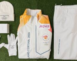 Si tratta di un capo tecnico progettato per essere indossato sopra l’abbigliamento personale, caratterizzato da trattamento antivento e impermeabile, particolarmente utile durante i giorni della staffetta, segnati anche da una significativa nevicata in Romagna. La divisa presenta inoltre un design moderno e funzionale ed è arricchita da un QR code dedicato ai tedofori, che rimanda a una pagina riservata con il branding di Milano Cortina 2026 e i cerchi olimpici.