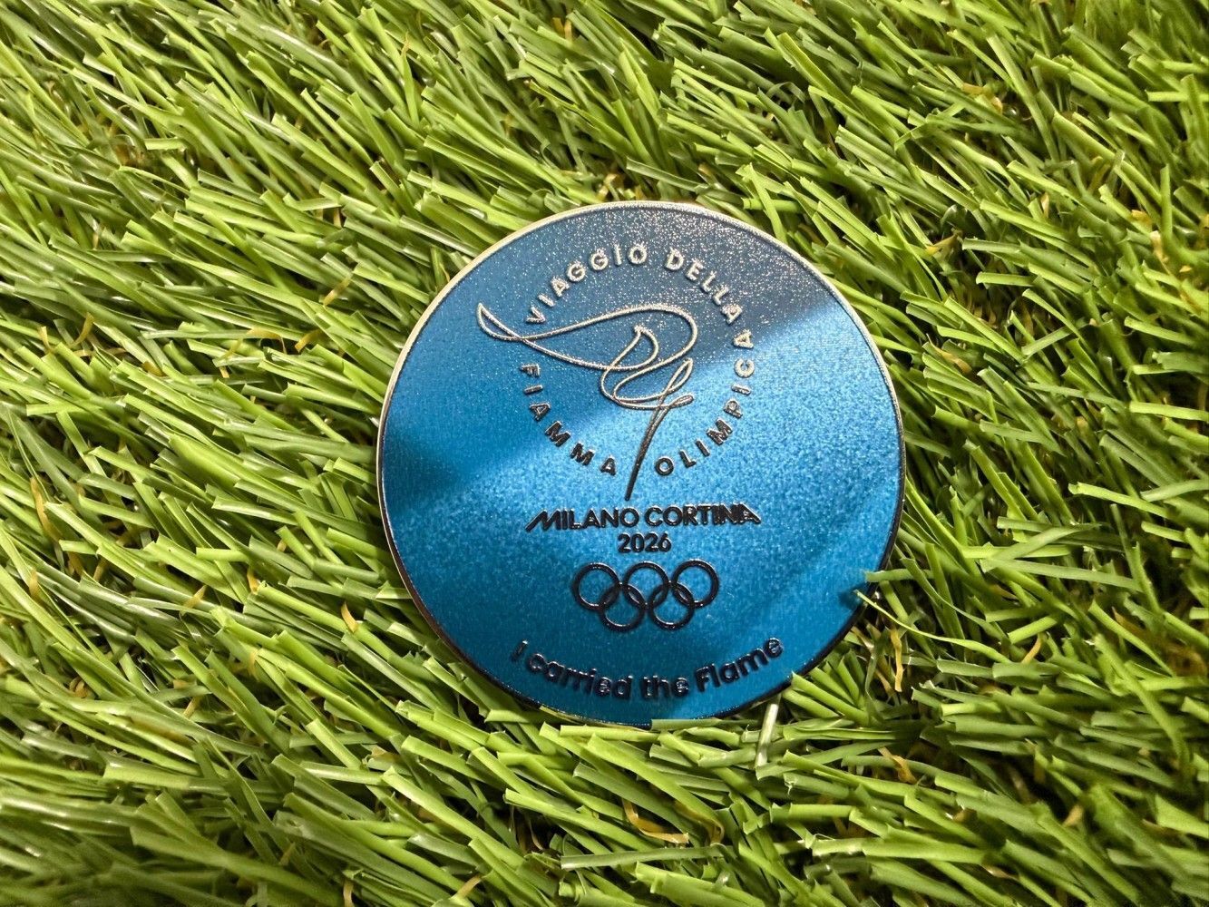 Non si tratta di una medaglia tradizionale, ma del tappo inferiore della torcia olimpica, realizzato in tiratura limitata. Questa scelta riflette una precisa volontà organizzativa delle Olimpiadi Invernali di Milano Cortina 2026: ridurre l’impatto ambientale attraverso il riutilizzo delle torce, che vengono ricaricate e impiegate più volte durante la staffetta.