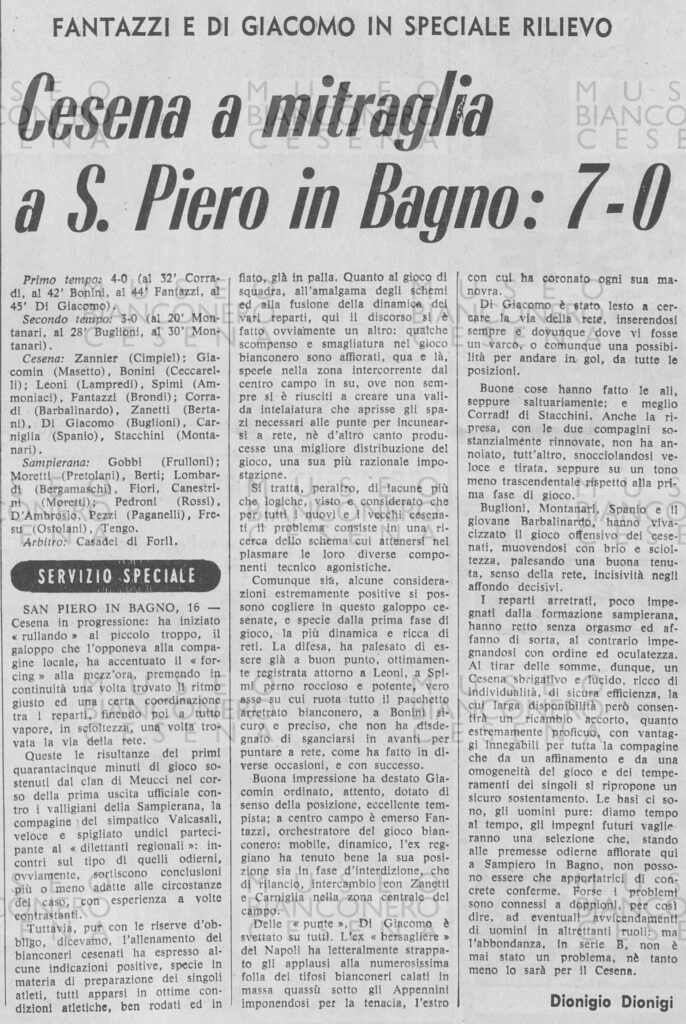 La Gazzetta dello Sport Stadio Il Cesena orgoglio dei romagnoli a Roma BELLARIA-CESENA 1968-69 (amichevole 1)