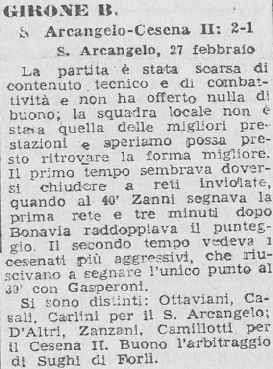 Articolo di Stadio SAVIGNANESE-CESENA B 1945-46 Il bel gesto di Pafundi per Berti e il teatrino tra Ghezzal e Candreva